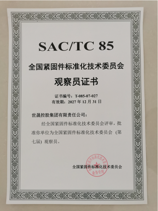 全國緊固件標(biāo)準(zhǔn)化技術(shù)委員會(huì)觀察員證書